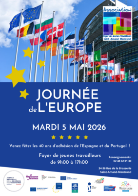 La Maison de l’Europe de Tours – EUROPE DIRECT, se rendra de nouveau cette année à Saint-Amand-Montrond pour célébrer la journée de l’Europe au Foyer de jeunes travailleurs.